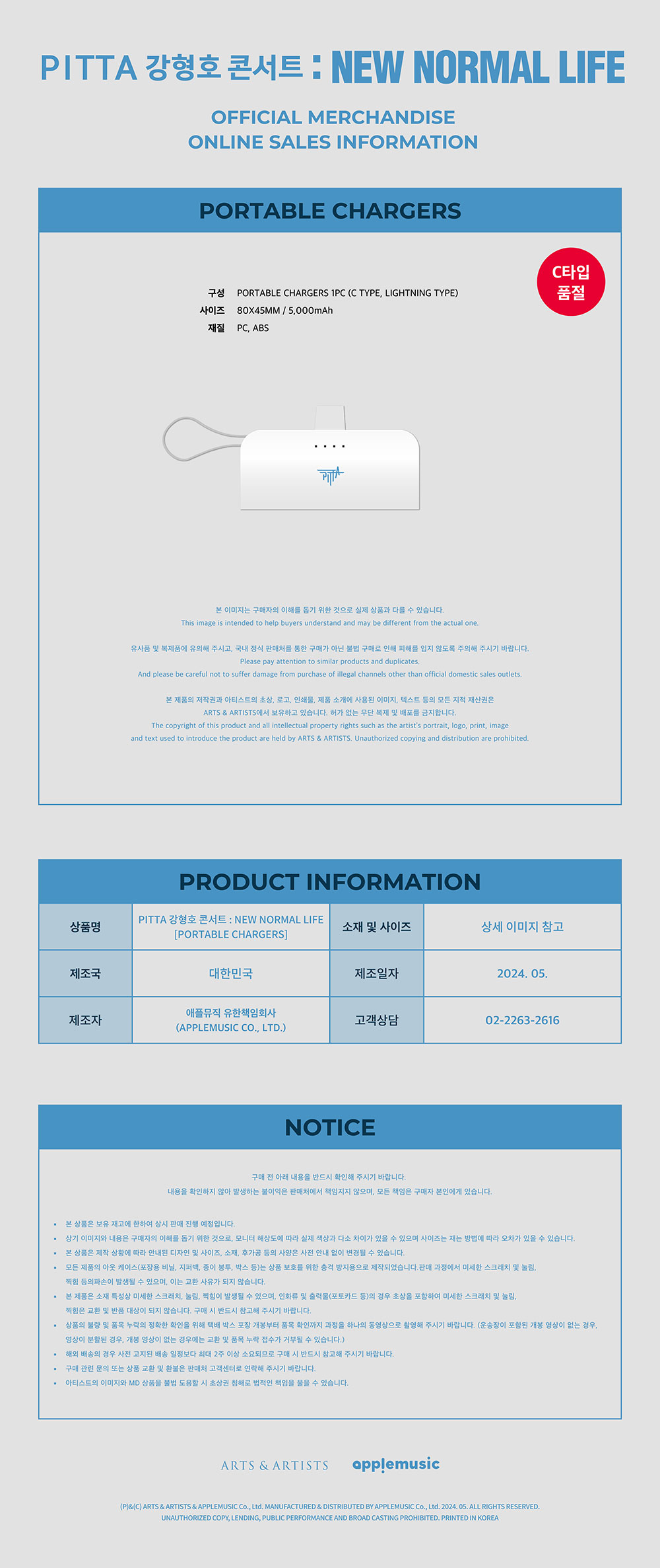 PITTAカン・ヒョンホコンサート:ニューノーマルライフ/一体型補助バッテリー