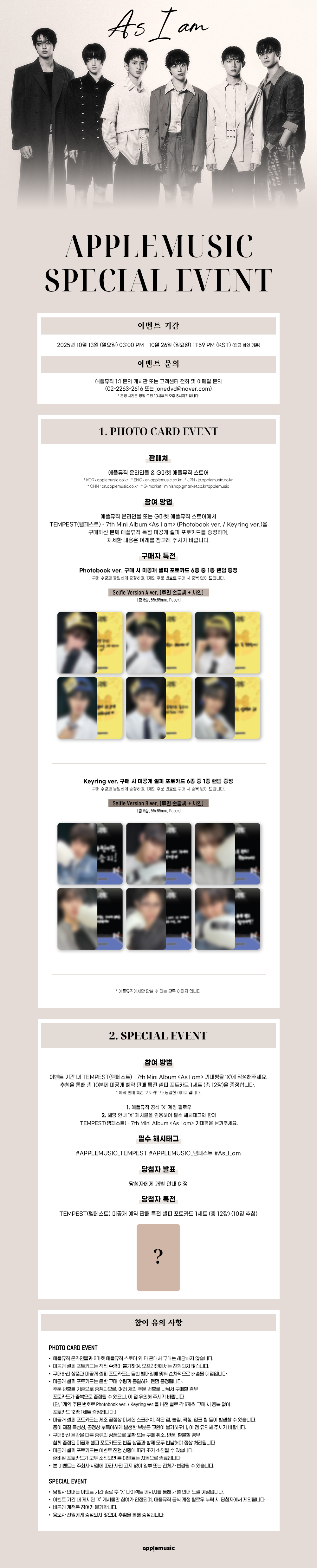 <As I am>을 준비하며 우리는 저마다 그려둔 내면의 선과 맞닥뜨렸다. 그리고 그 선을 넘지 못해 머뭇거리던 과거의 우리를 떠올리며, 다시 한번 서로의 손을 잡고 앞으로 나아가기로 결심했다. 어둠 속에서도 빛을 향해 걸어가는 힘, 끝내 자신을 잃지 않고 앞으로 나아가려는 의지, 그리고 그 속에서 발견한 가장 솔직하고 자연스러운 ‘나’. 이번 앨범은 바로 그 순간들을 담담하게 풀어낸다.