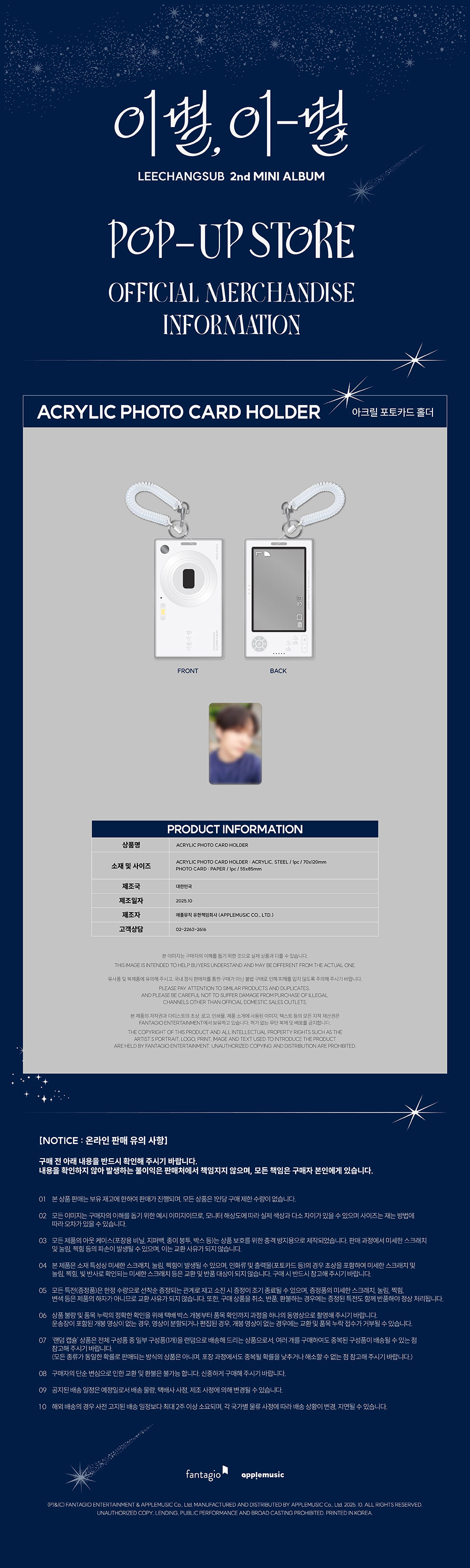 - イ・チャンソプ(LEECHANGSUB)2nd MINI ALBUM POP-UP MD /アクリルフォトカードホルダー(ACRYLIC PHOTO CARD HOLDER)