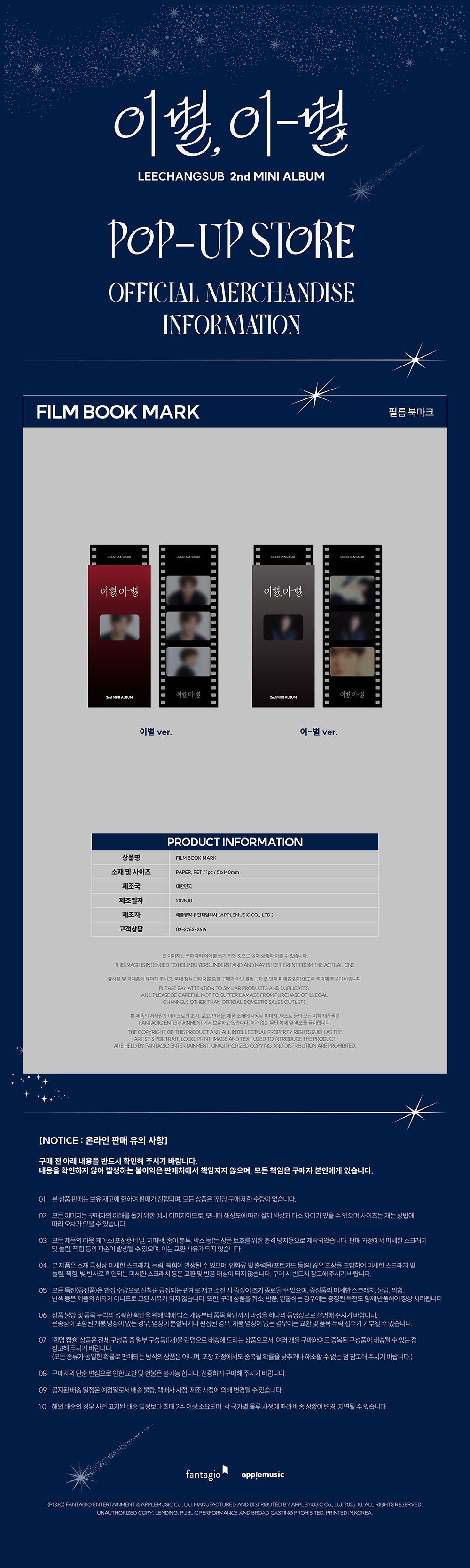 - イ・チャンソプ(LEECHANGSUB) 2nd MINI ALBUM POP-UP MD / フィルムブックマーク (FILM BOOK MARK)