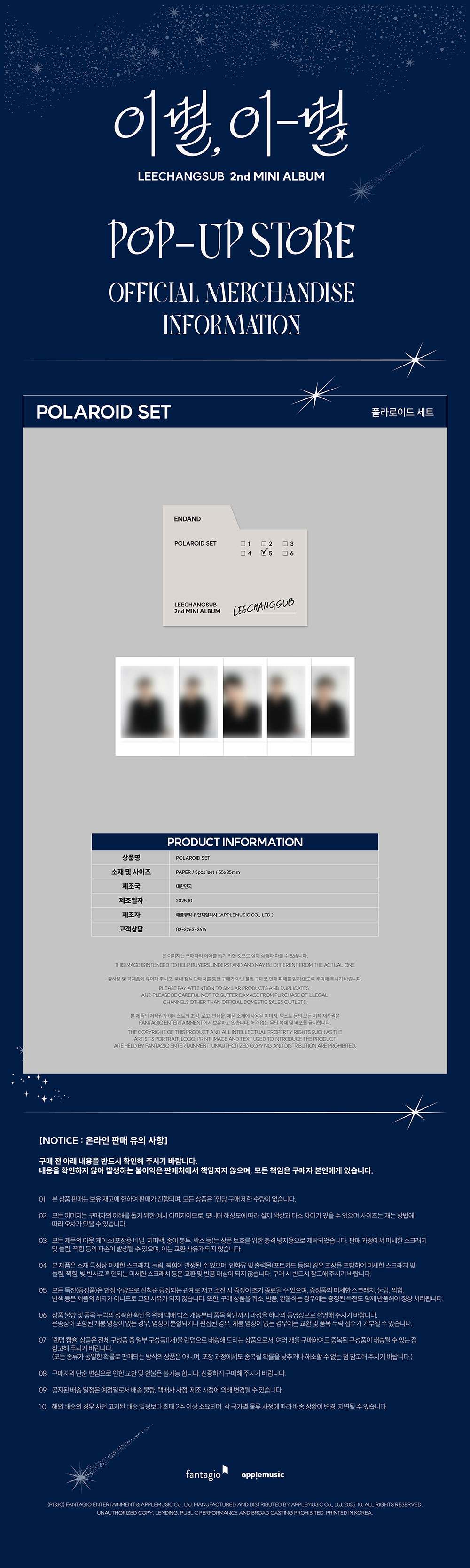 - イ・チャンソプ(LEECHANGSUB) 2nd MINI ALBUM POP-UP MD/ポラロイドセット(POLAROID SET)
