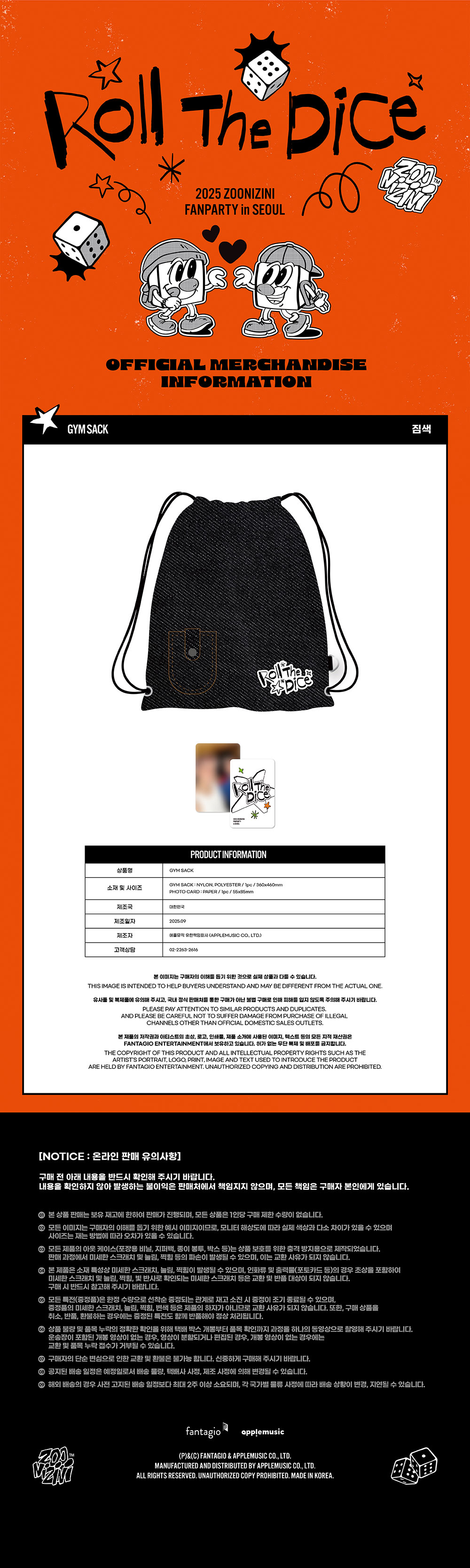 - ジュニジニ(ASTRO)2025 ZOONIZINI FANPARTY [Roll The Dice] MD / ジムカラー(GYM SACK)RING)