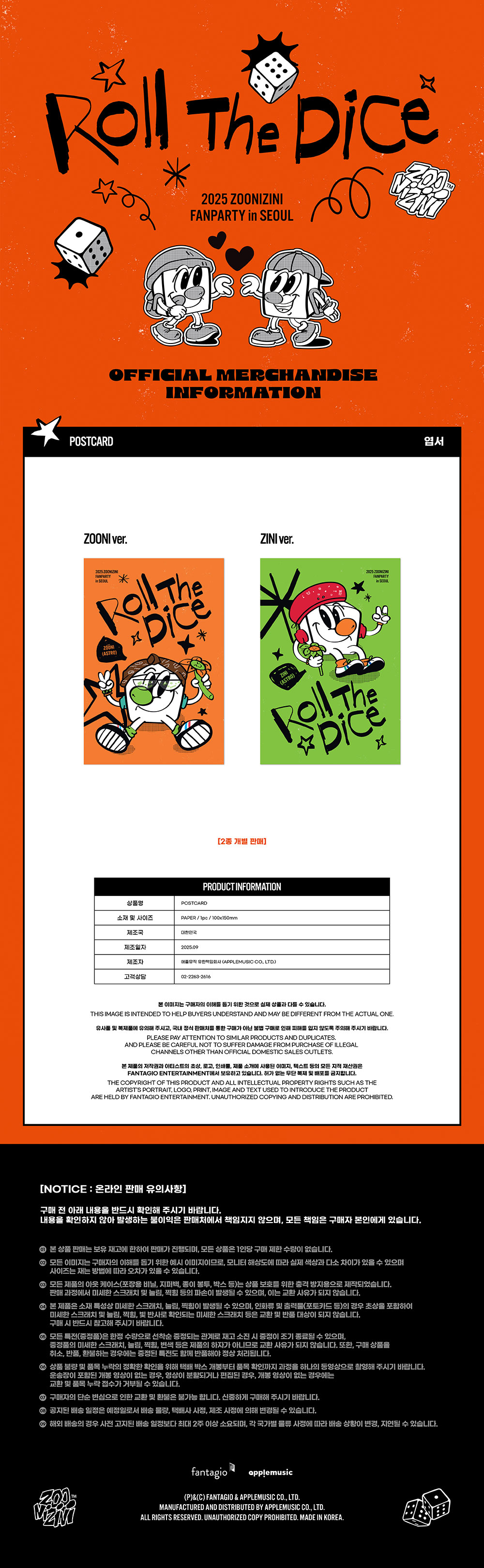 - ジュニジニ(ASTRO) 2025 ZOONIZINI FANPARTY [Roll The Dice] MD / はがき (POSTCARD)